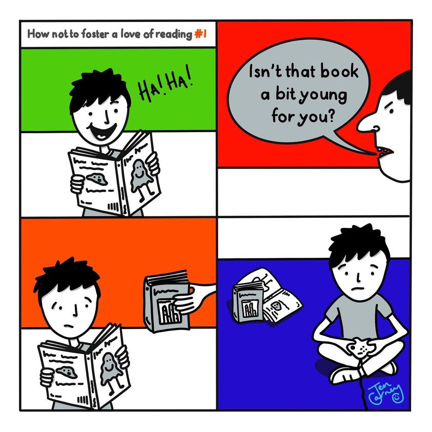 To avoid shattering confidence, please don’t tell your child they are ‘too old’ for a book.