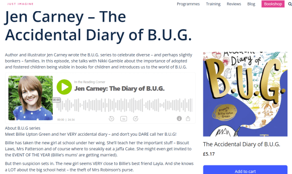 I had a lovely chat with Nikki Gamble on the JUST IMAGINE podcast. You can catch up here. We talk about the importance of representing adopted children in funny fiction, biscuits, colours and all things BUG!