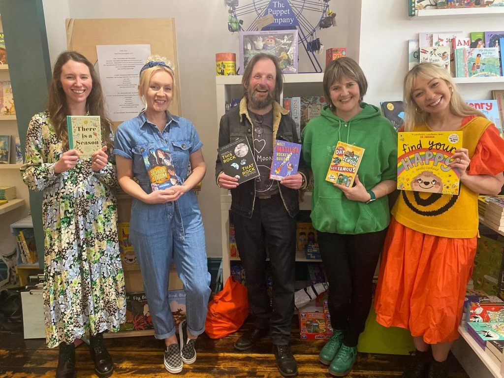 It was great to participate in an author extravaganza at Ebb & Flo bookshop recently. Pictured from left to right: uber talented and extra-lovely Kerri Cunningham (Murphy’s Sketches); Sarah Harrison, brilliant author of School of Doom; Amazing poet, author and moon-fan, Dom Conlon; me; and Emily Coxhead, bubbly and bright creator of Find Your Happy.