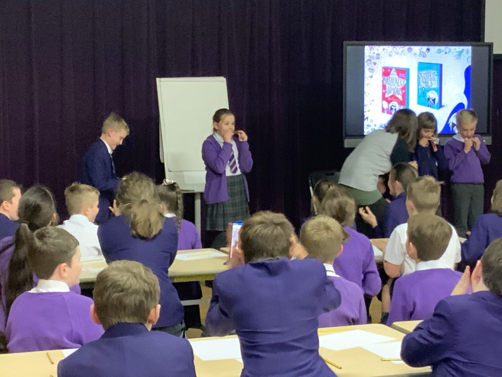 Workshops like the one described above can be delivered to individual KS2 classes, or to a larger group of KS2 pupils in the hall.